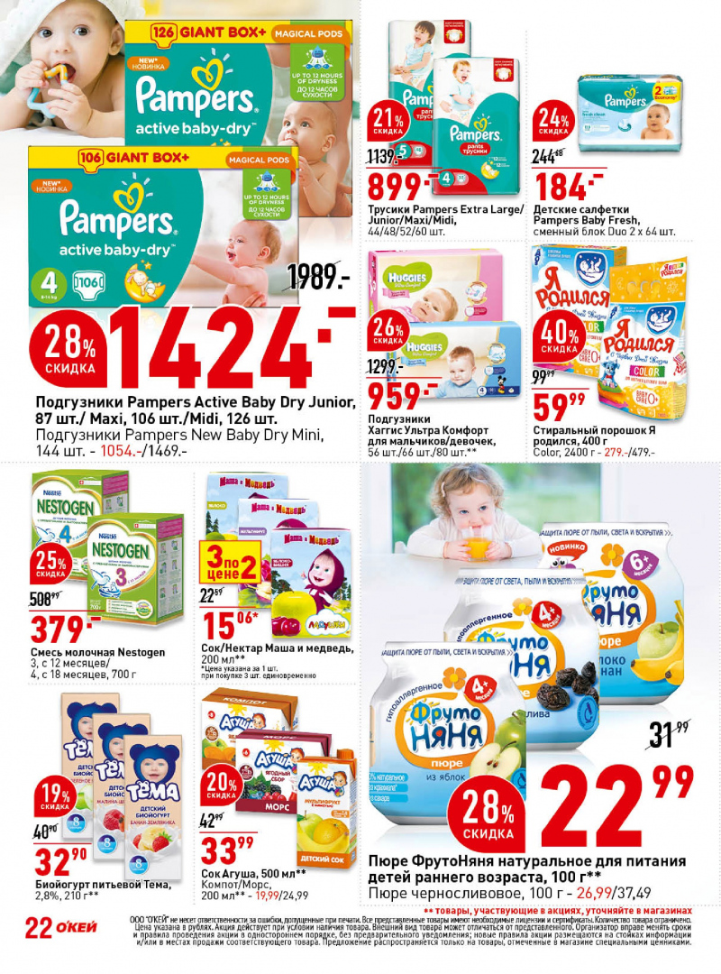Одна из крупнейших продуктовых сетей ОКЕЙ была создана в России в 2002 году, и насчитывает на сегодня более 100 магазинов. Ассортимент супермаркетов и гипермаркетов ОКЕЙ отвечают всем ожиданиям покупателей. В сети ОКЕЙ существует собственная торговая марка "То что надо!", товары которой продаются по выгодным ценам. Так же компания выпускает каталоги своих магазинов, в которых покупатели могут найти интересующий их товар со скидкой.