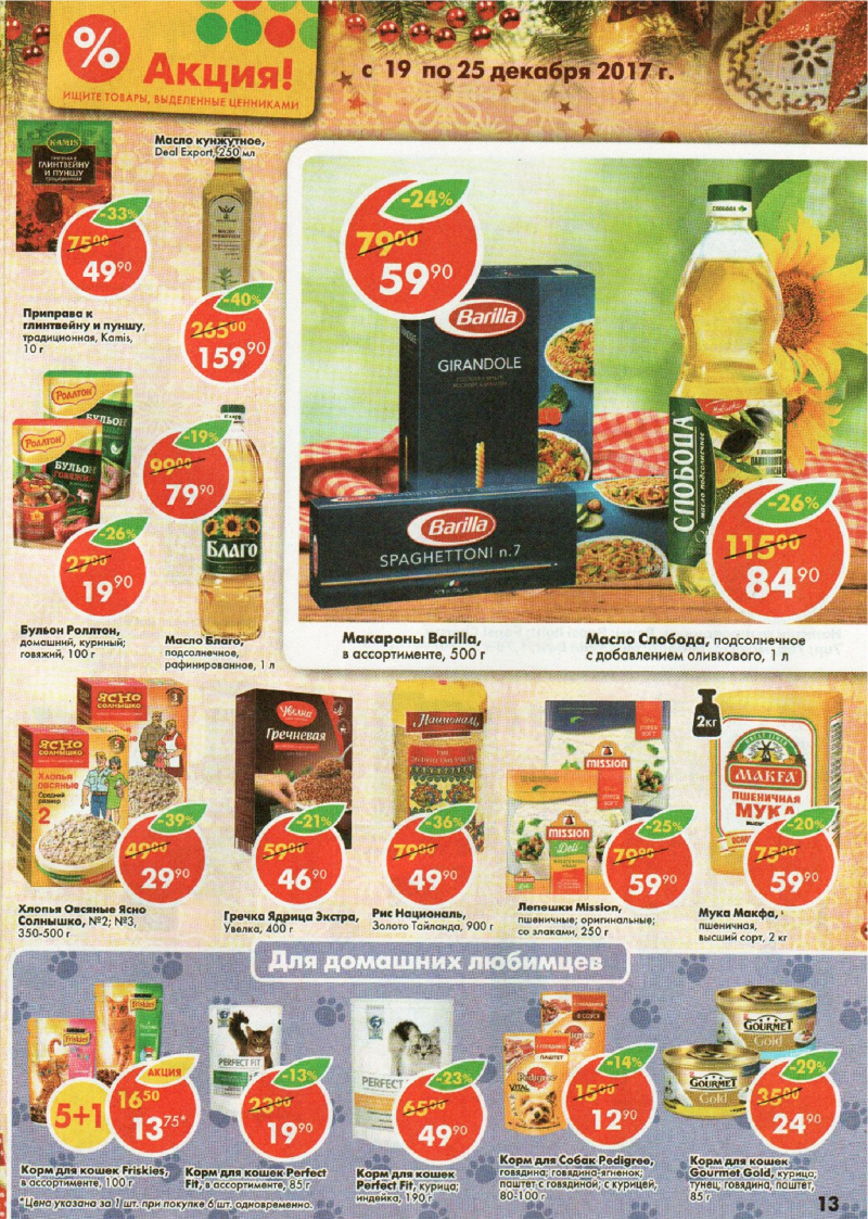 Пятерочка предлагает посмотреть свой еженедельный каталог, который будет действовать с 19 по 25 декабря 2017 года. Новый каталог акций в Ростове-на-Дону предложит вашему вниманию ряд товаров со скидками, которые помогут вам сэкономить.